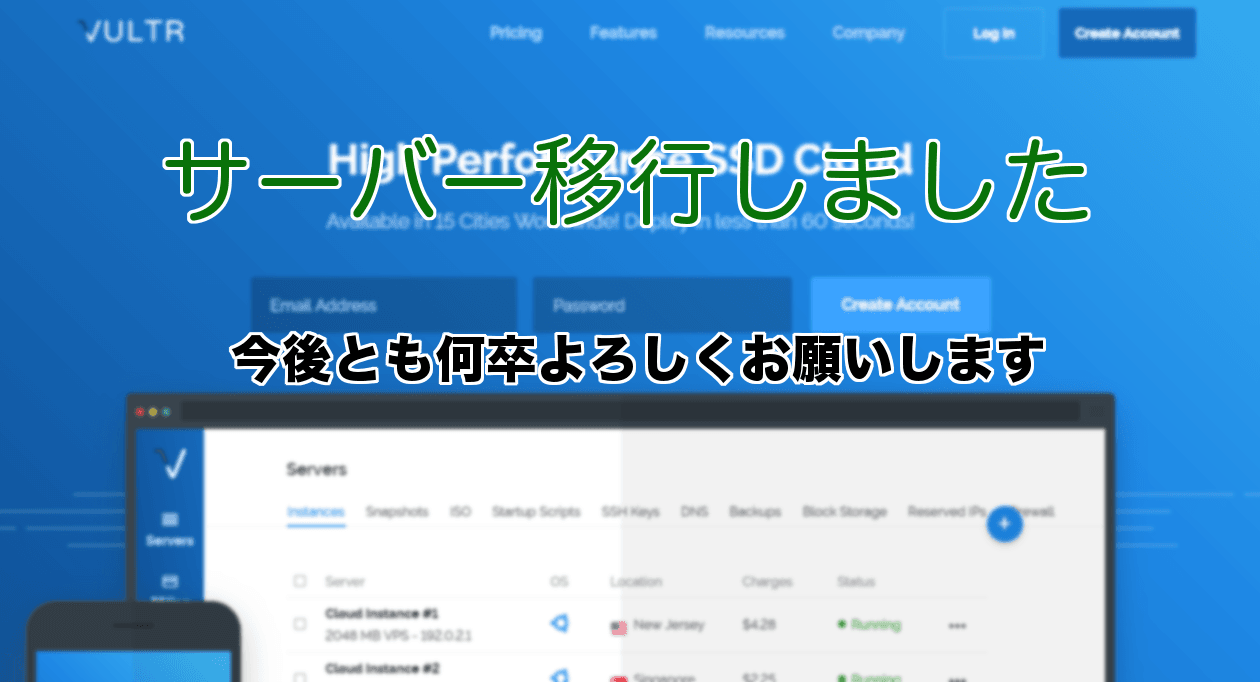 勘違いされそうですが、現在観ているページは移行後のページです。 azureの無料サーバーじゃ、せっかく観てくれてる人に申し訳ないので、鯖変えました。 https://t.co/NjSrOM85VTでサーバー借りてみた ! #ILoveVultr #Cloud https://t.co/XFRvvMTMPI — Till0196 (@Till0196) 2017年8月11日 ここにある…