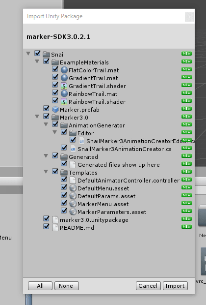 今までは、上記の工程だけでSnail Markerが利用できていましたが、現行バージョンのSDKでは仕様が変わったため、マーカーの跡が残らなくなっています。