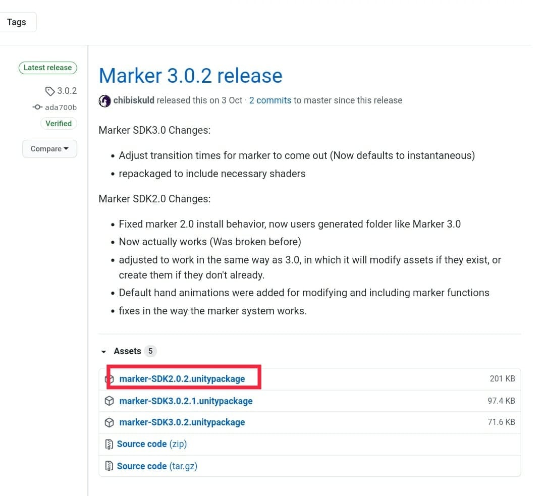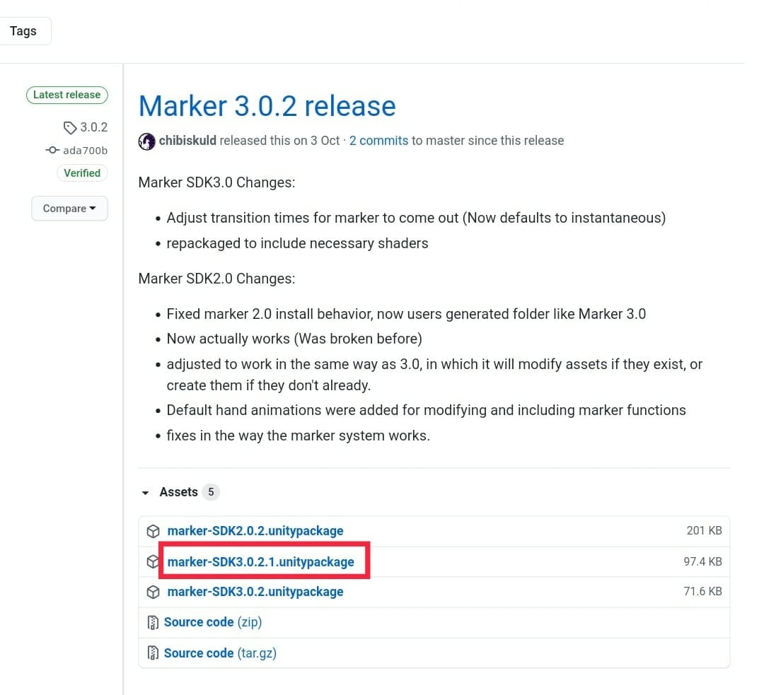 Snail Marker本体はGitHubでメンテナンスされていて、ReleaseのところにUnity Packageが用意されています。