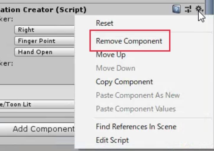 もし、一度押したはずのコンポーネントが復活していたら、コンポーネント右端の設定ボタンから「Remove Component」をクリックしてください。