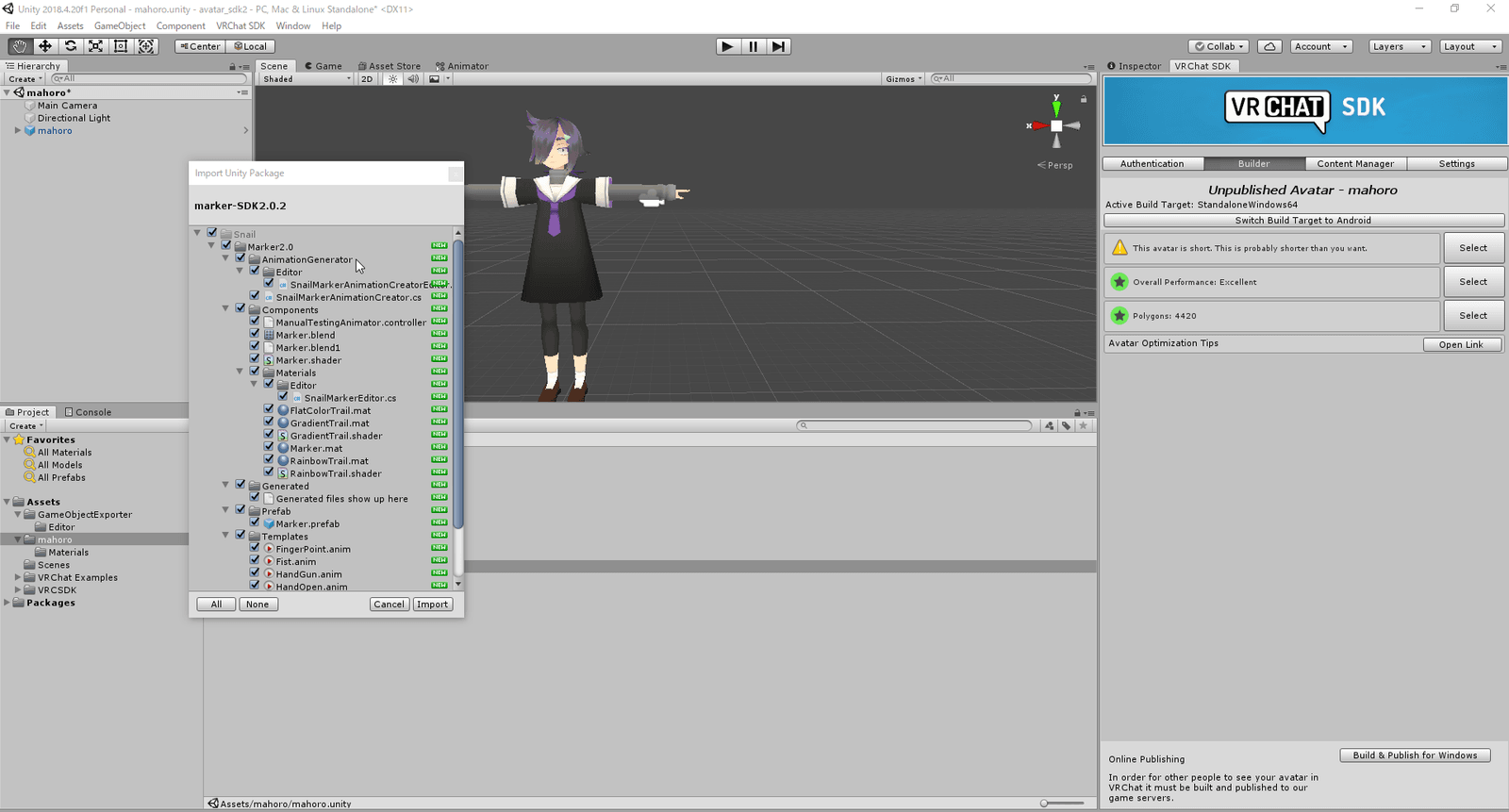 ダウンロードが終わったらアバターをアップロードするために使っているプロジェクトにインポートします。