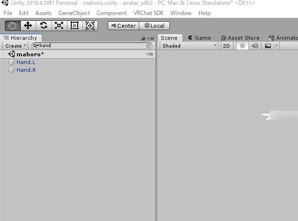 置くときに気をつけなればならない点が、1点あります。それは、Hierarchyの欄ではなく、アバターの表示されているSceneにドラッグ・アンド・ドロップすることです。もし、やってしまうと、手にペンが追従出来なくなります。気をつけてください。