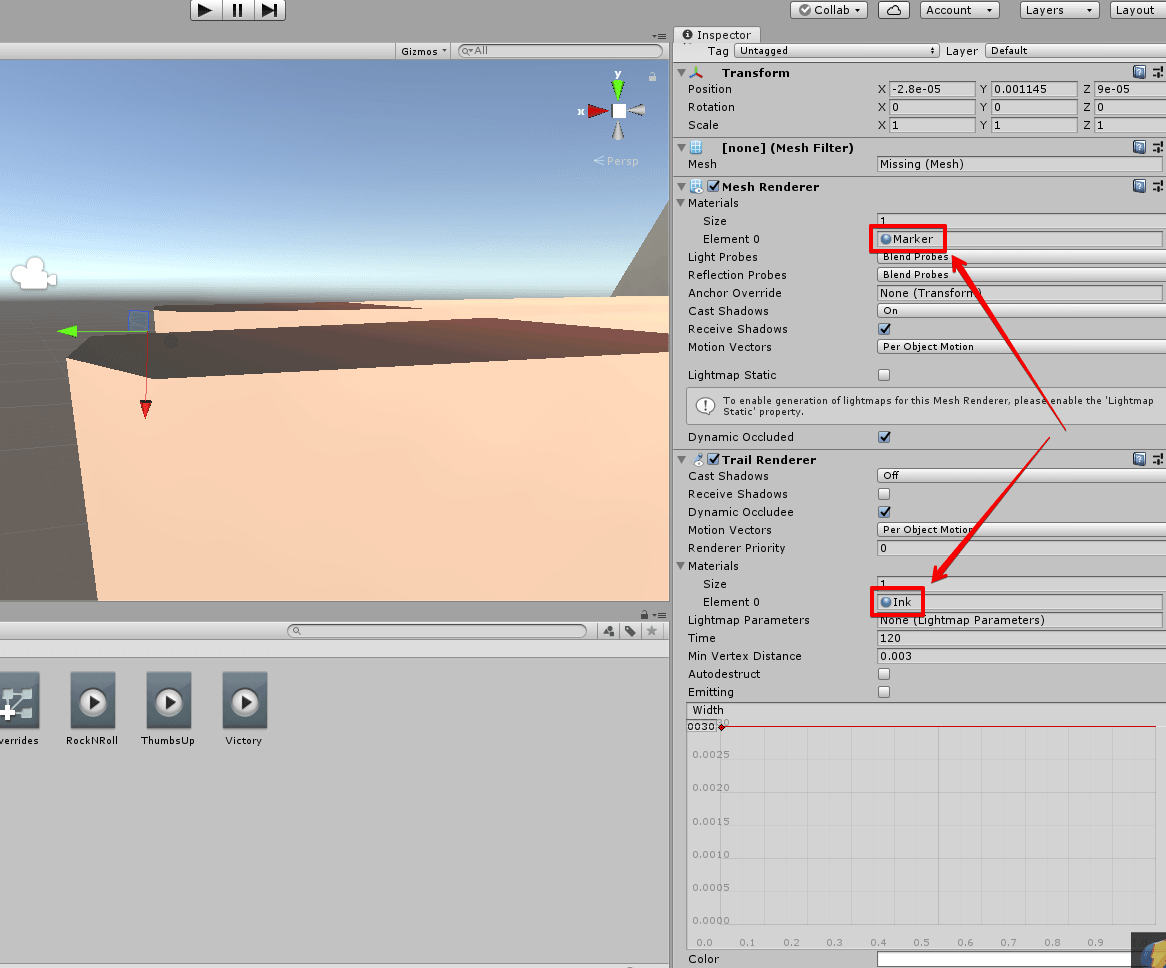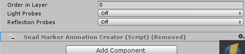 自分はUnity初心者なので、ザッとしか把握出来ていませんが、「Trail Renderer」がペンのインクの処理部分で、「Snail Marker Animation Creator」というのが、以前の面倒くさい工程(アニメーションの作成など)をワンクリックで実現出来るようになったスクリプトの設定コンポーネントのようです。