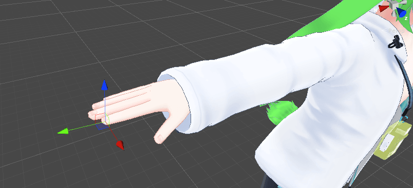 手のボーン(Hand_Rなど)に配置した後は、指先に本体が来るように調節します。