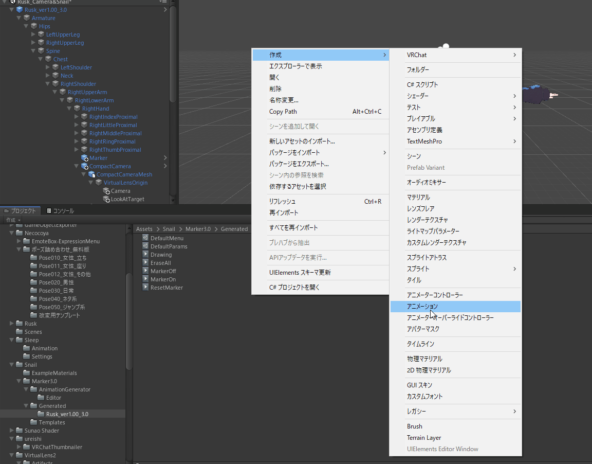 場所は、どこでもいいですが、自分は分かりやすいように「Assets/Snail/Marker3.0/Generated/{アバター名}」に「ResetMarker」というファイルを作成しました。
