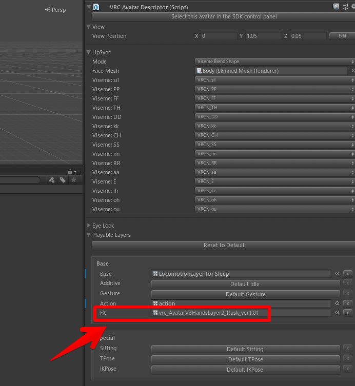 Hierarchyでアバターの親のPrefavを選択して、Inspectorで「VRC Avatar Descriptor(Script)」内Base→FXを確認。設定されているファイルをダブルクリックで、該当ファイルを開くことができます。
