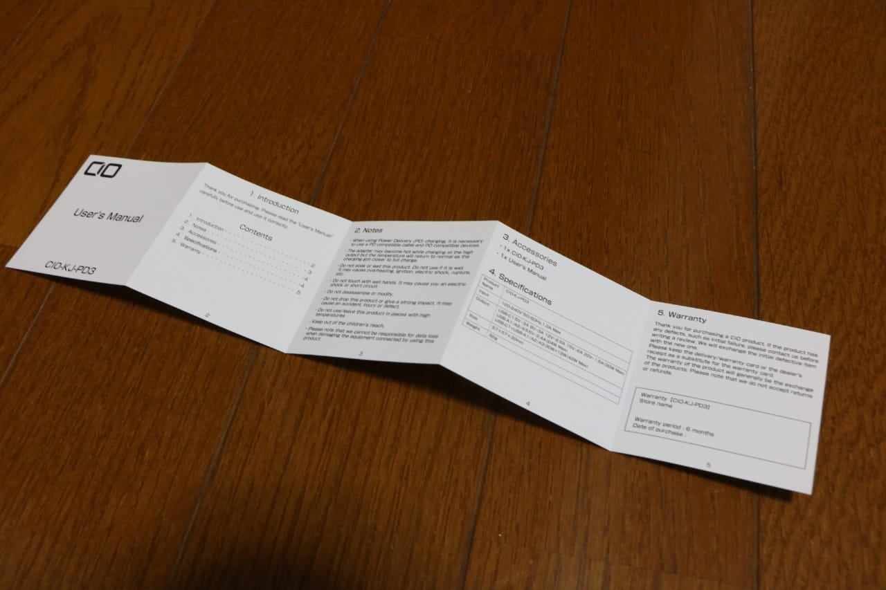 ちゃんとした説明書がついています。最後のページには3ヶ月の国内保証の記載があります。国内で企画と販売をしているので、初期不良や故障などの対応もスムーズにしてくれます。