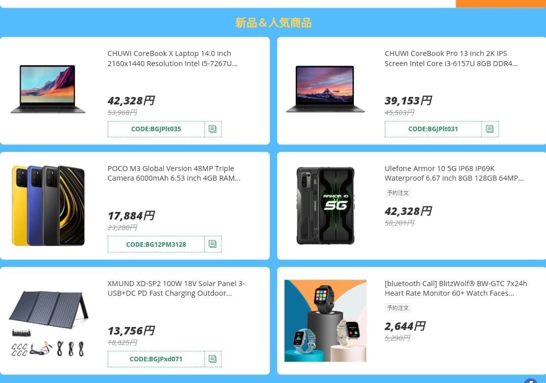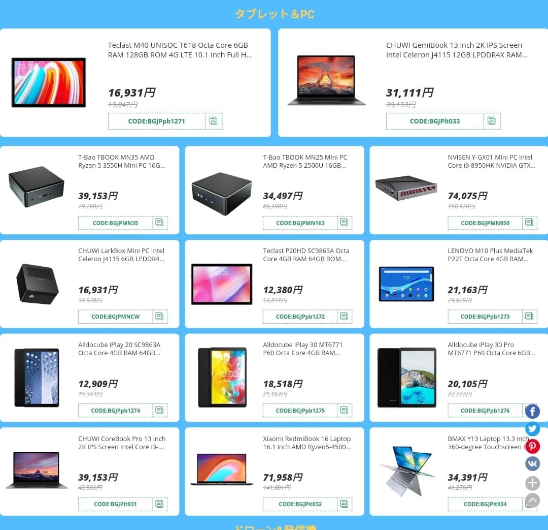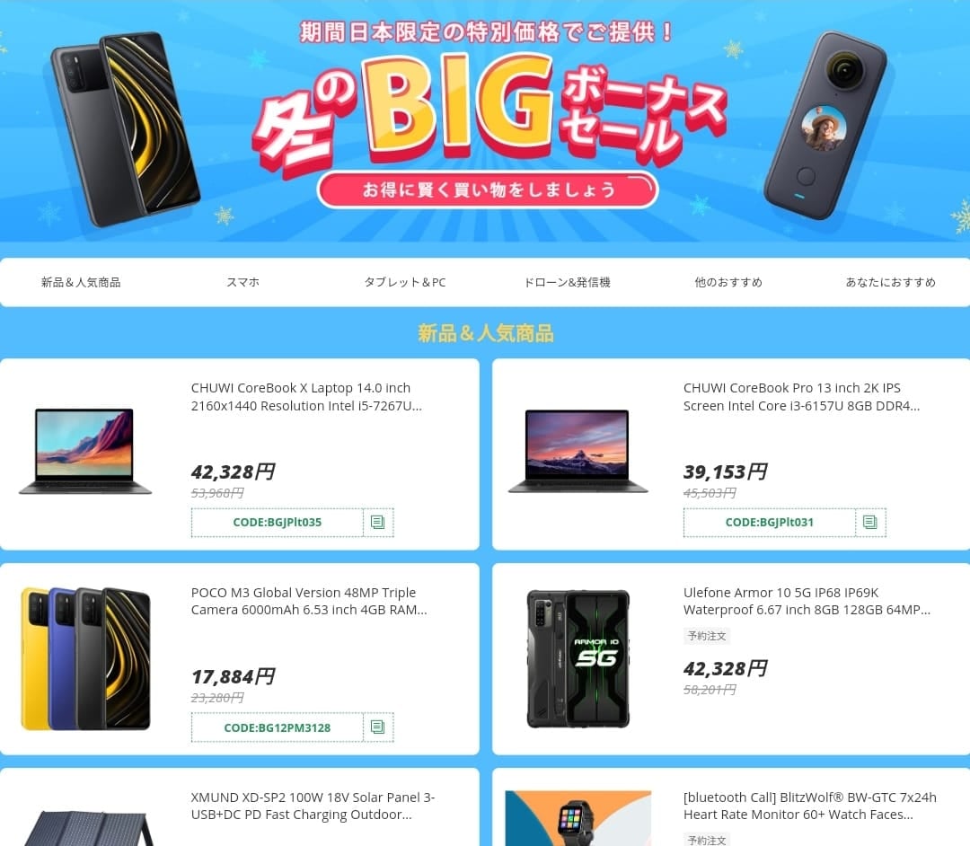 Banggoodがタブレットやスマートフォン、PCなど人気商品を日本向けに特別価格でセールしています。