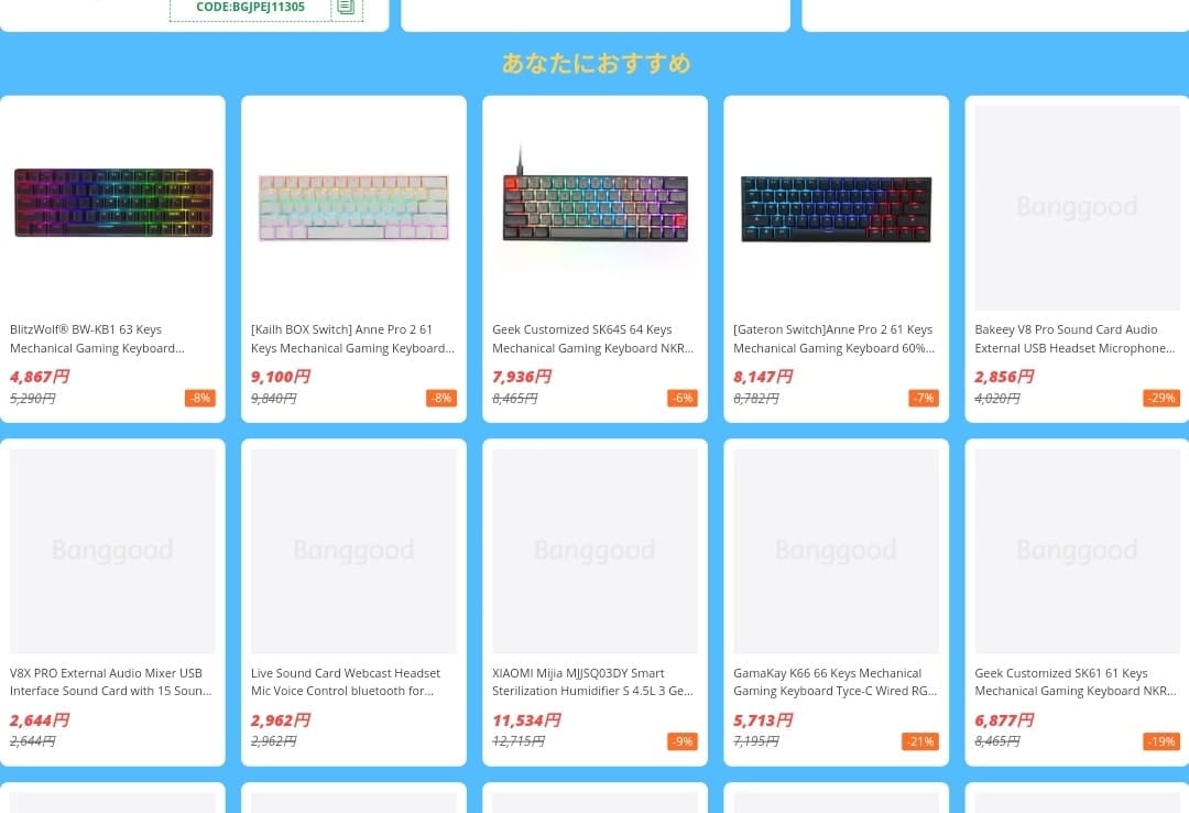直近でキーボードをザッピングしていたせいか、キーボードだらけになっていますが、人それぞれ違う商品が並ぶようです。