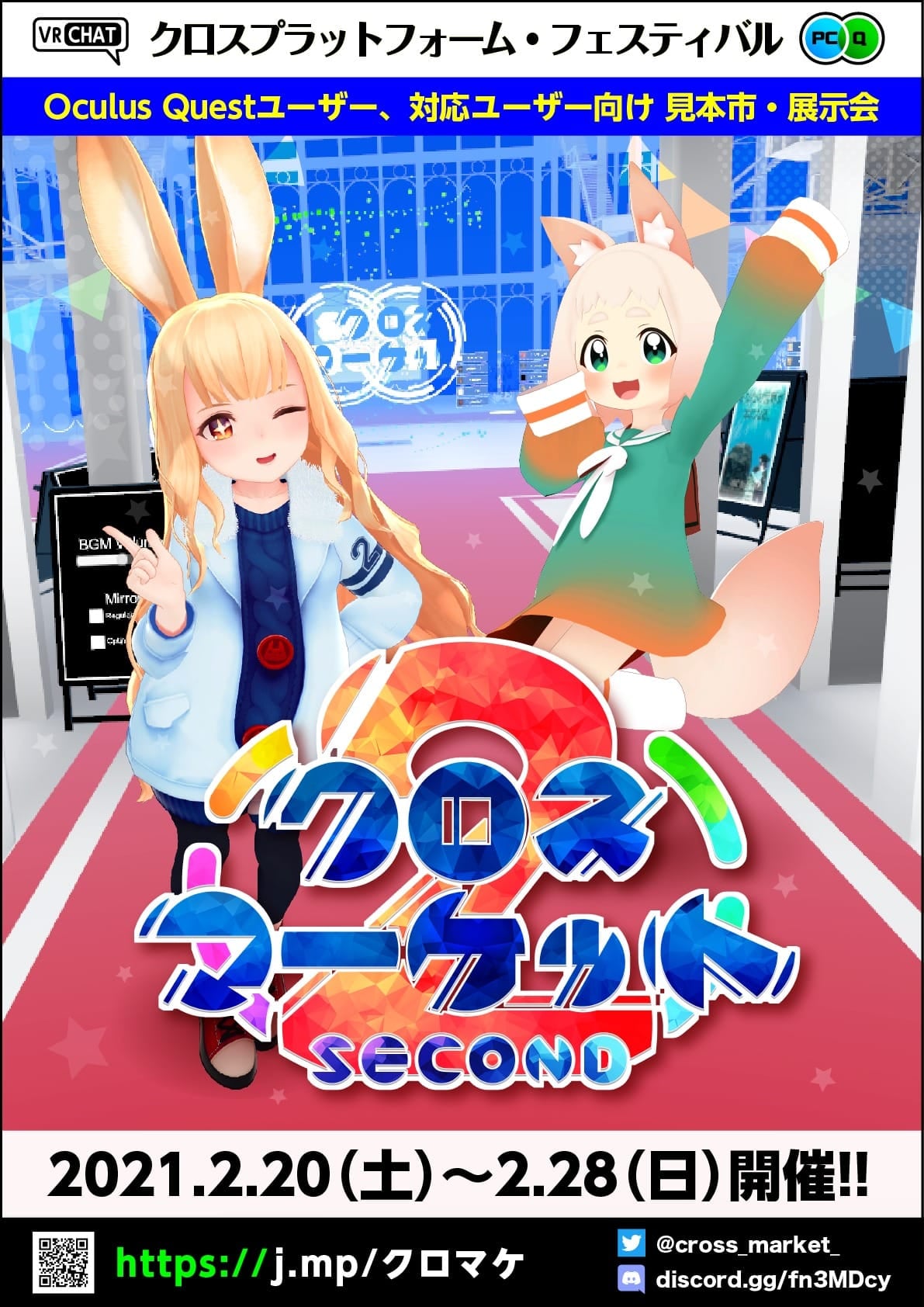 VRに興味のある方は知ってる方も多いであろう、VRChat内で開かれる大規模イベントVketは、Vket3以降Quest対応のワールド(出展がQuest対応のサークルのみなので、PC向けのものとは内容は異なります)を準備していますし、Quest向けのバーチャル即売会イベント「クロスマーケット」もあります。