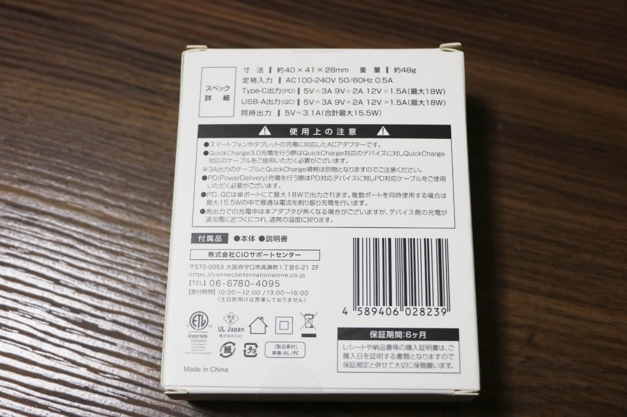 CIO株式会社は、大阪の会社ということもあって、同じ価格帯でも中華製の怪しげな充電器よりも安心感があります。