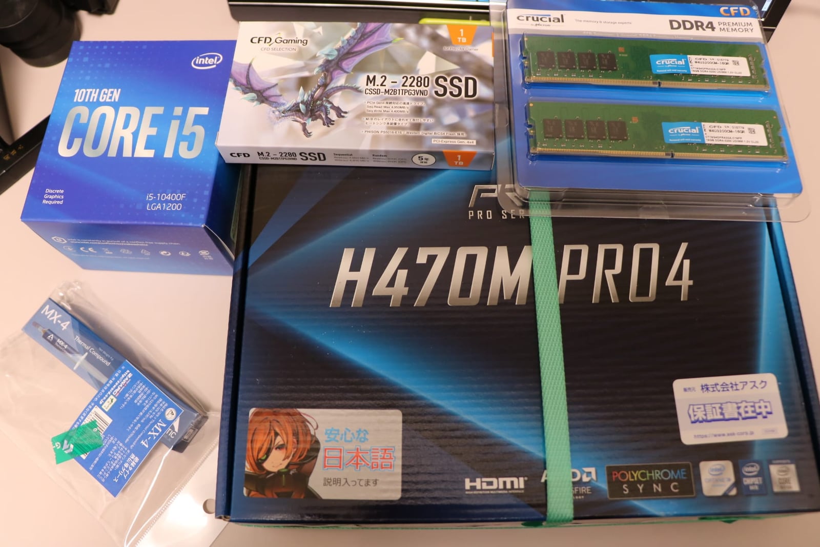 CPUに関してはCore i5 10400Fがセール対象ではなかったのですが、コスパが良いと評判を耳にしていたこともあり、これをチョイス。ネットの在庫が少ないことも分かっていたので、もしかしたら無いかもと思い、前日の閉店直前に電話したら「Core i5 10400F、ありますよ」とのことで、テンションがガッと上がりました。