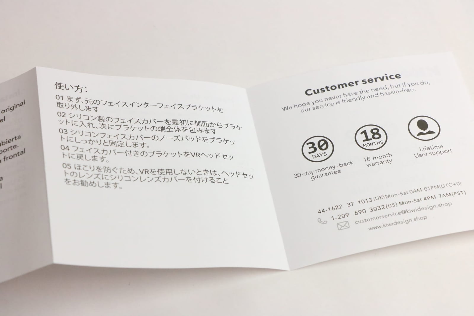 付属品としては、「Oculus Quest 2用シリコンカバー」「レンズ保護カバー」「説明書」となっています。