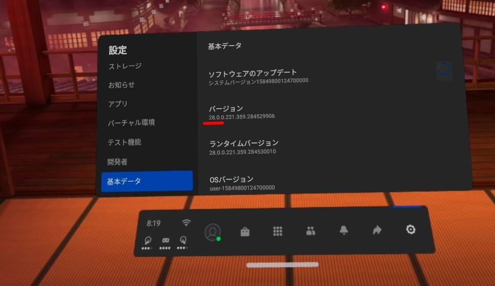 Oculus Questのアップデートは一斉には行われず、順次自動アップデートという形でアップデートされます。