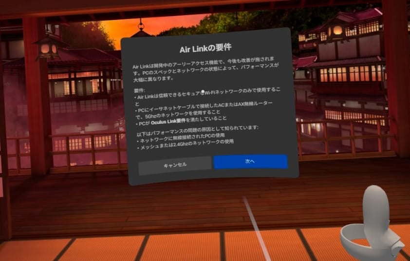 しかし、初代QuestのファームウェアにはAir Linkを実行させる機能が既に追加されています。