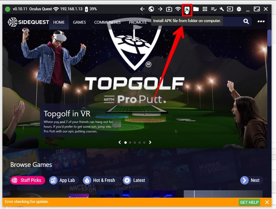 ここではグラフィカルにインストール出来るSideQuestでのやり方を記述します。