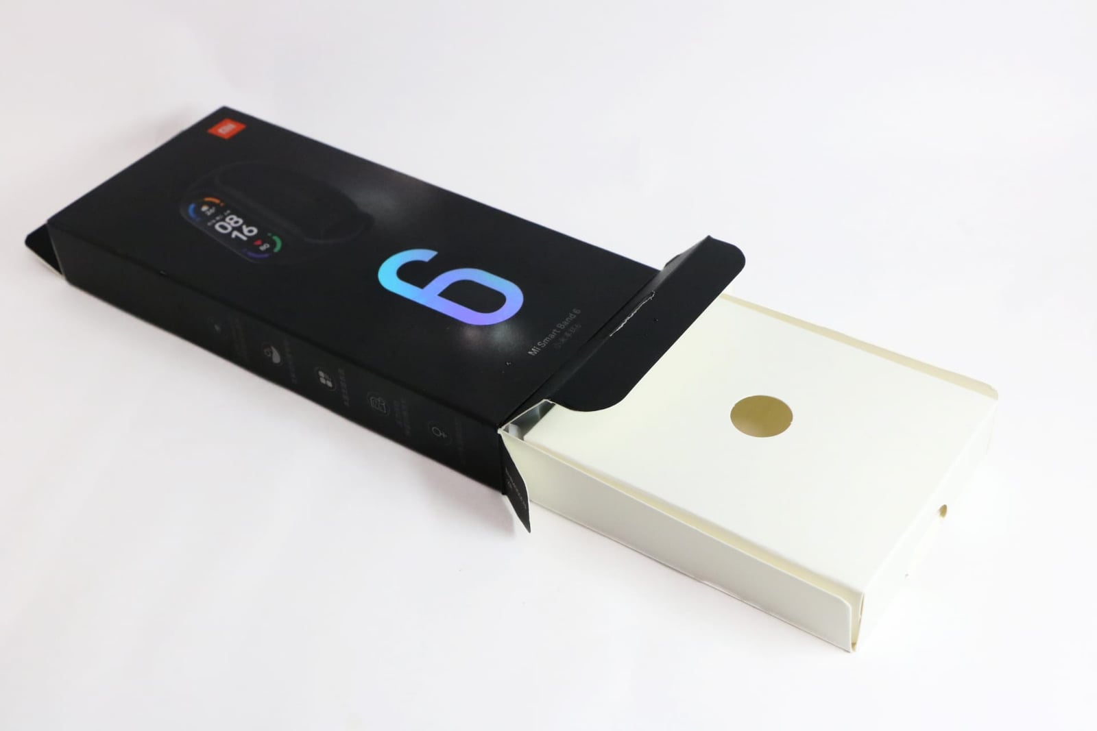 パッケージの半分は空です。Mi Band 5の時は、本体の場所が決まっていなくて、輸送時にカタカタと音がしていましたが、Mi Band 6では固定されています。