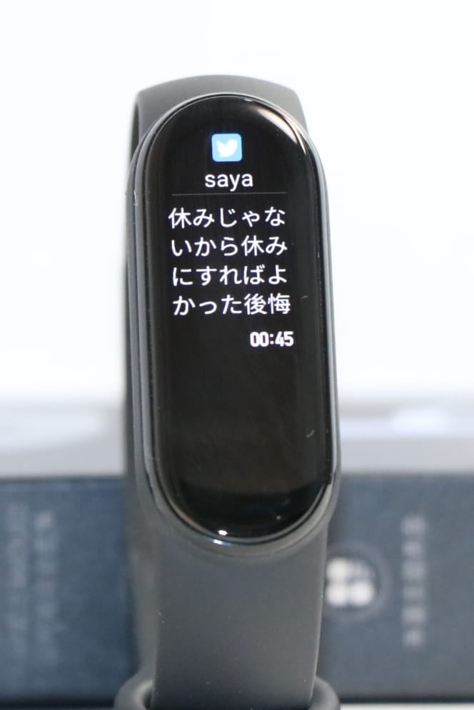個人的には、最大消費設定で最低でも5日は持つので、スマートバンドとしては十分なだと思います。