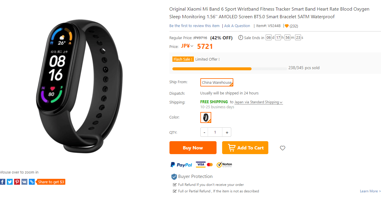 今回のレビューにあたっては、中国発送のECサイトTOMTOPからMi Band 6のサンプルを提供していただきました。