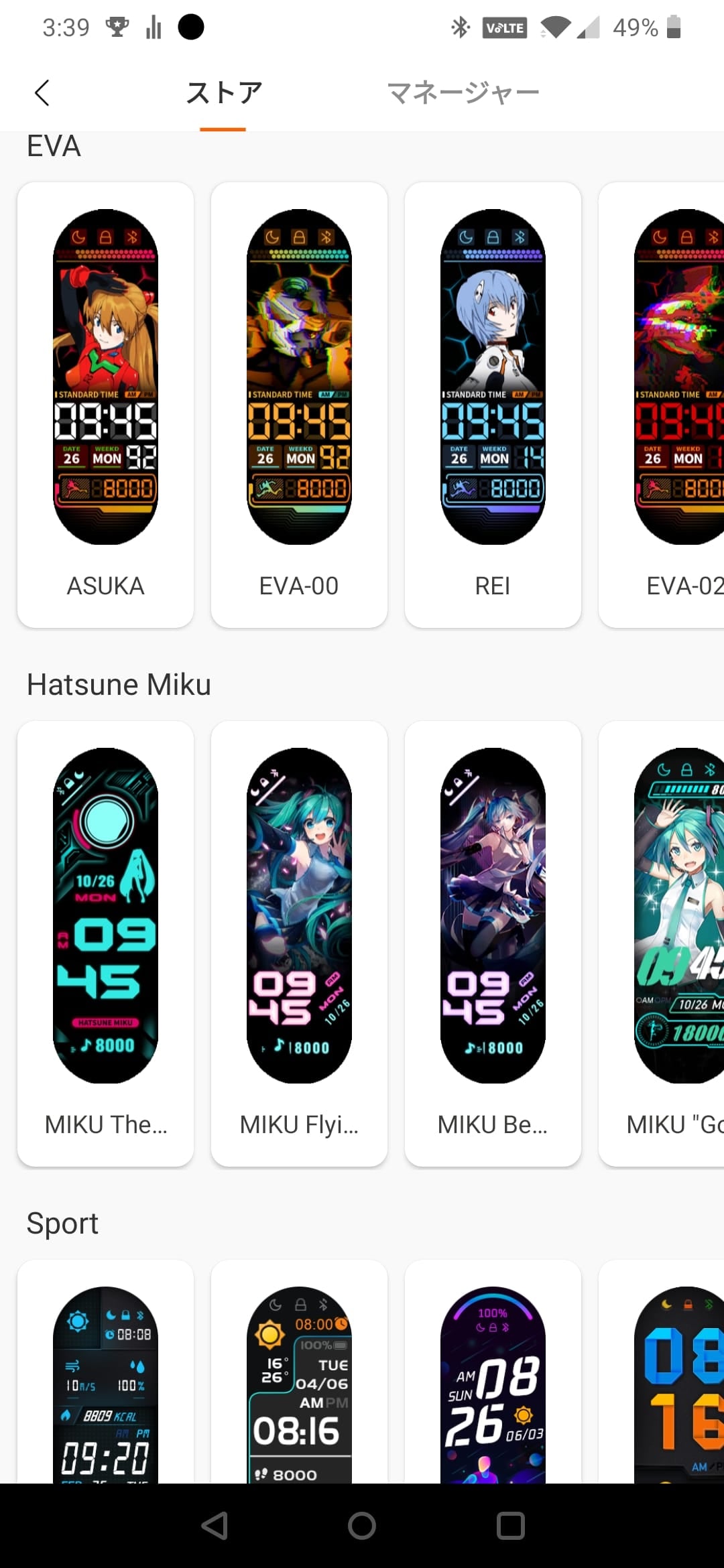 Mi Band 5の時に追加されたエヴァやコナン、初音ミクのコラボウォッチフェイスはMi Band 6用に最適化されて引き続き追加されていました。