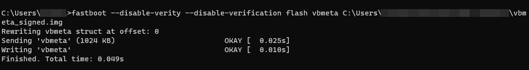 fastboot --disable-verification --disable-verification flash vbmeta vbmeta_signed.img