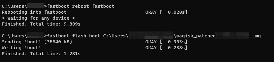 fastboot flash boot magisk_patched.imgvbmetaとbootのイメージを焼きます。