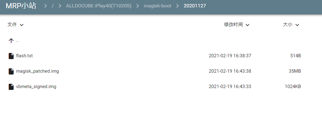先程のサイトのmagisk-boot内20201127フォルダのmagisk_patched.imgとvbmata_signed.imgをダウンロードします。