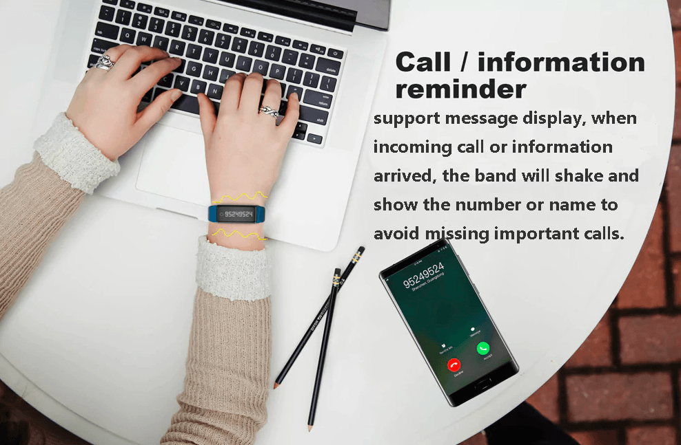 | 機能 | ・バイブレーションによるアラーム ・電話受け機能(マイクなし) ・アラーム(作成可能アラーム数: 5 ) ・心拍数モニター ・歩数計 ・睡眠モニター ・メッセージ通知(Facebook、G-メール、ライン、Skype、Twitter、Wechat、WhatsApp) |