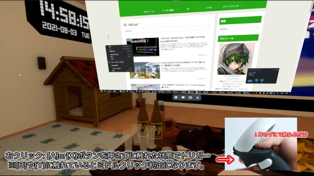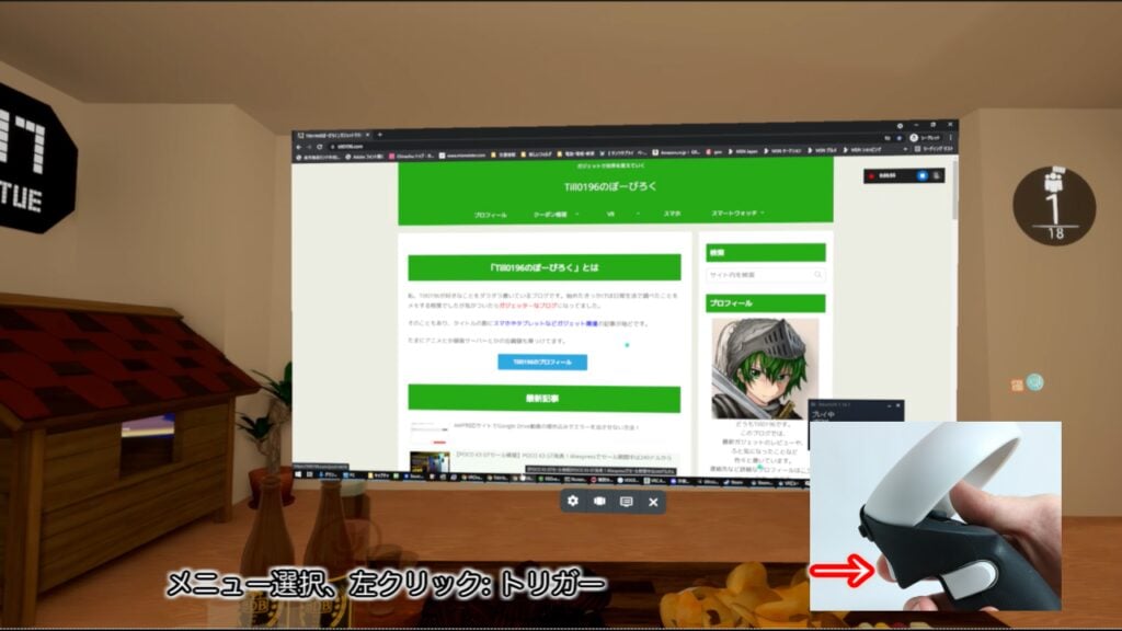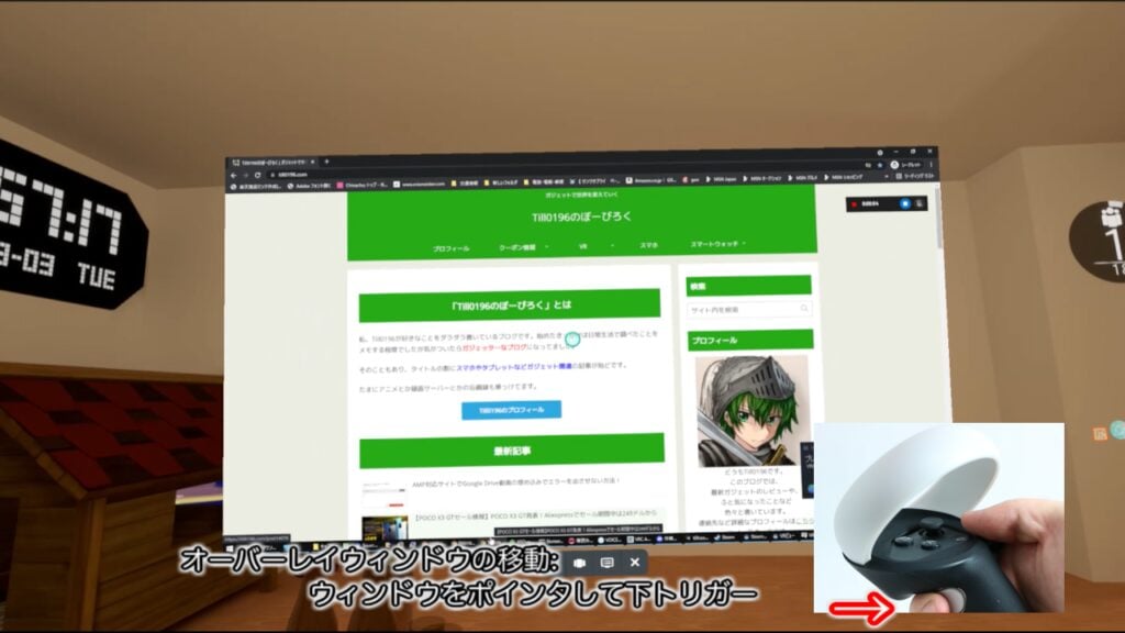 ウィンドウの中にポインタを合わせて、下トリガーを引くとコントローラーの動きに追従して、オーバーレイが動きます。