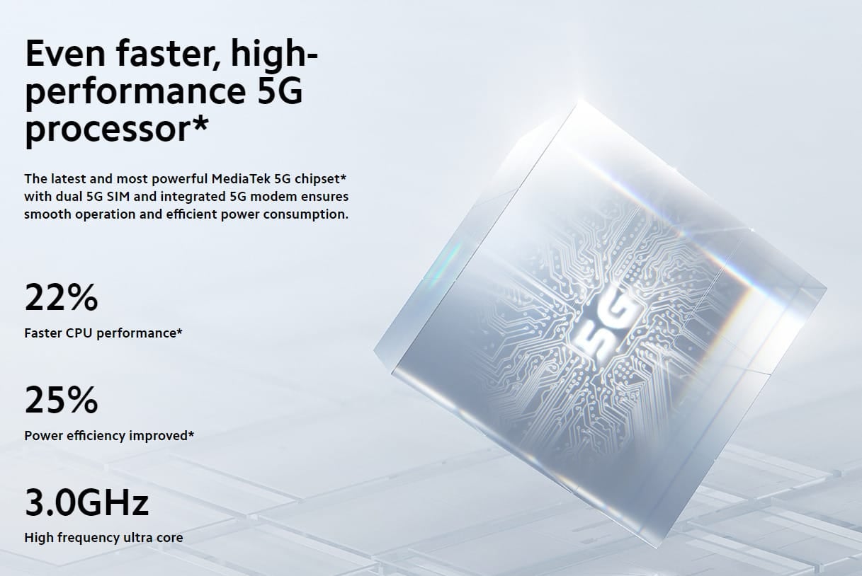 108 MPプログレード・カメラ、最新のフラッグシップMediaTek Dimensity 1200-Ultra、120HzリフレッシュレートのAdaptiveSync対応AMOLEDディスプレイ、67Wの高速充電に対応した5000 mAhのバッテリーを搭載しています。