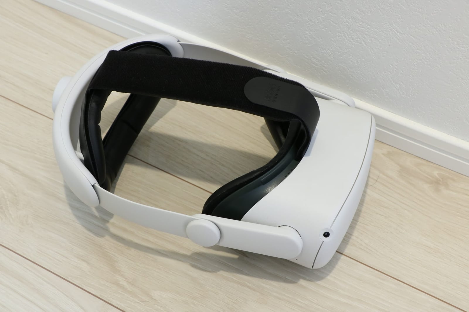 自分は座ったままVRをプレイすることがあるのですが、その際に壁に頭をもたれかかることで、ヘッドセットの重さを軽減するようにしてプレイしています。このストラップをつけたまま、同じ様にもたれかかると背面のホイールが邪魔になって不安定になってしまいます。
