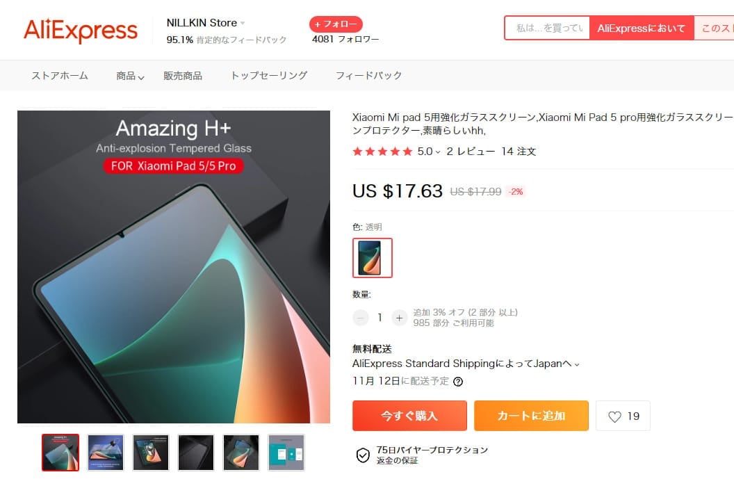 Aliexpressではオリジナルのガラスフィルムもあるのですが、あえてNILKINを選んだのは、この記憶があったからです。