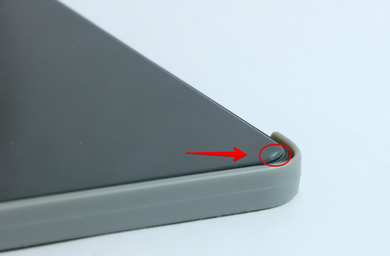 ただ、フィルム貼り付けが苦手な自分には位置合わせが難しく、何回か貼り直しを繰り返していたら、角が欠けてしまい浮きが出来てしまいました。