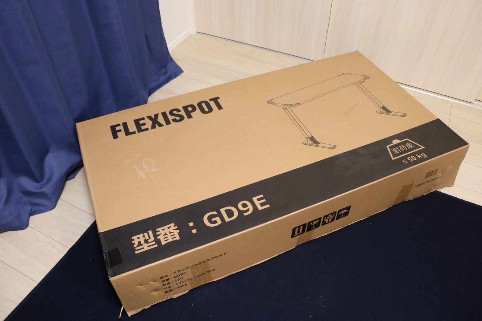 天板、脚が全て一つの箱に入っているので、この箱が40kg程の重さがあります。