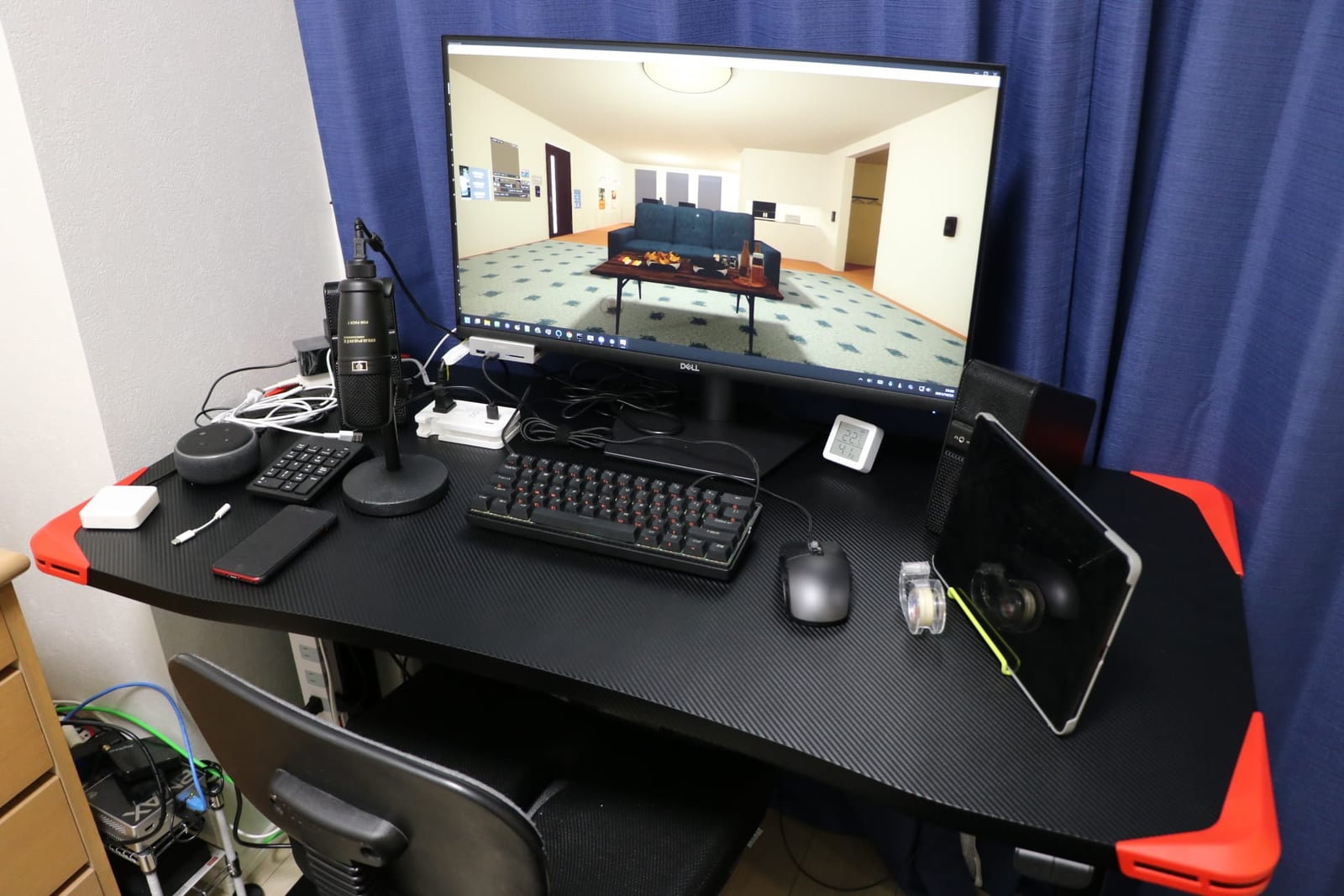 モニターはDellの27インチモニタ(S2721HSX)ですが、奥行きが60センチあるので、モニターと目線の距離は十分あります。