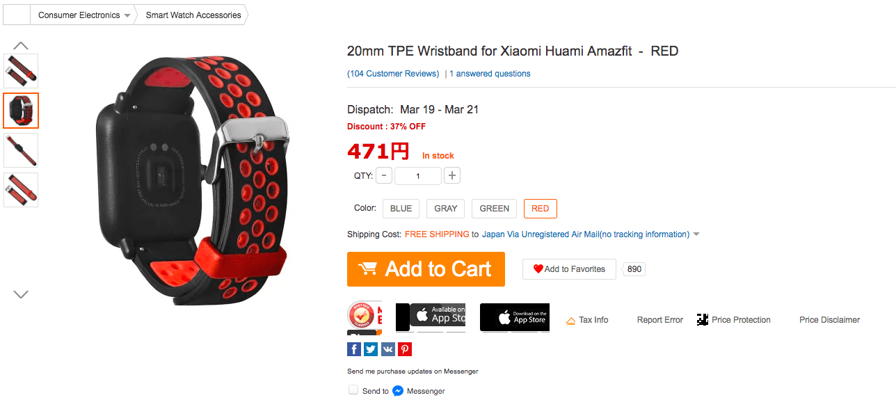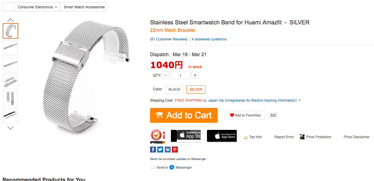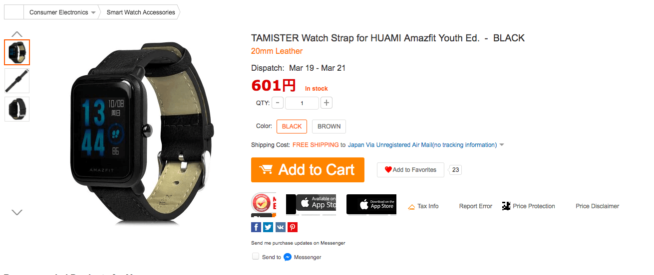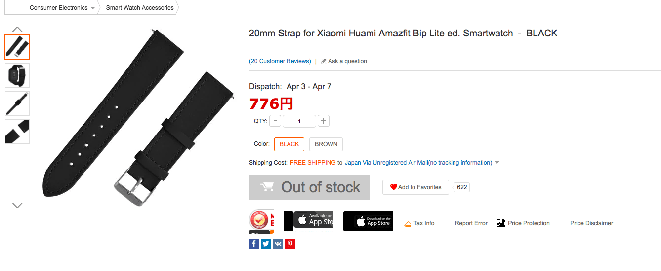 ※これはQ&Aで「Xiaomi Huami Amazfit用です」のような、よくわからない回答になっていますが、19.50mm幅なのでAmazfitBipで利用可能なはずです。