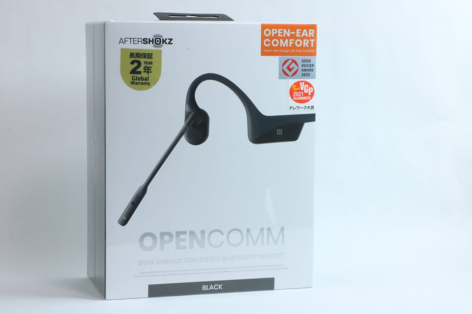 今回レビューするAfterShokz OpenCommは、そんなテレワーク需要に応えるため、ハイエンドモデルAfterShokz Aeropexを通話と長時間利用を想定した設計のモデルとして、昨年秋に発売した商品です。