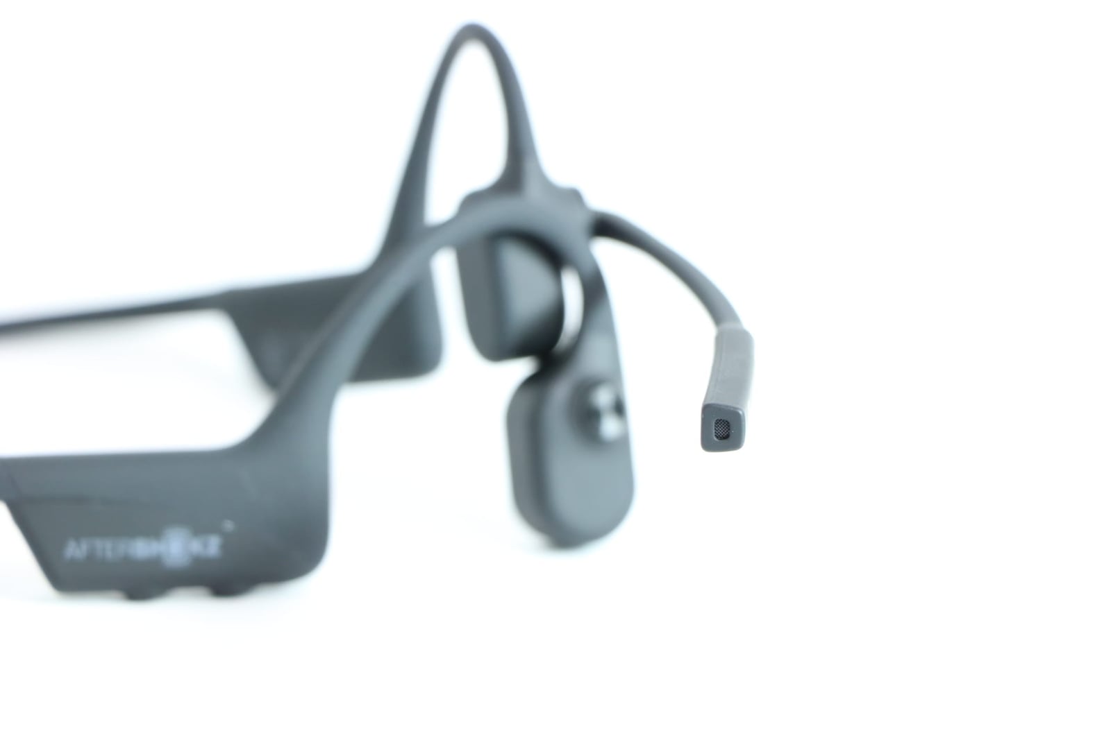 AfterShokz AeropexやOpenMoveではマイクは、骨伝導の振動部分についていたので少し大きめに声を出さないとマイクが拾ってくれなかったのですが、OpenCommではより口に近い位置にマイクがくるので、声をクリアに拾ってくれやすいです。