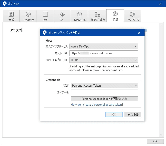SorceTreeでAzure DevOpsにログインする