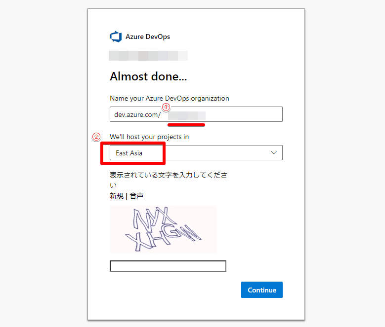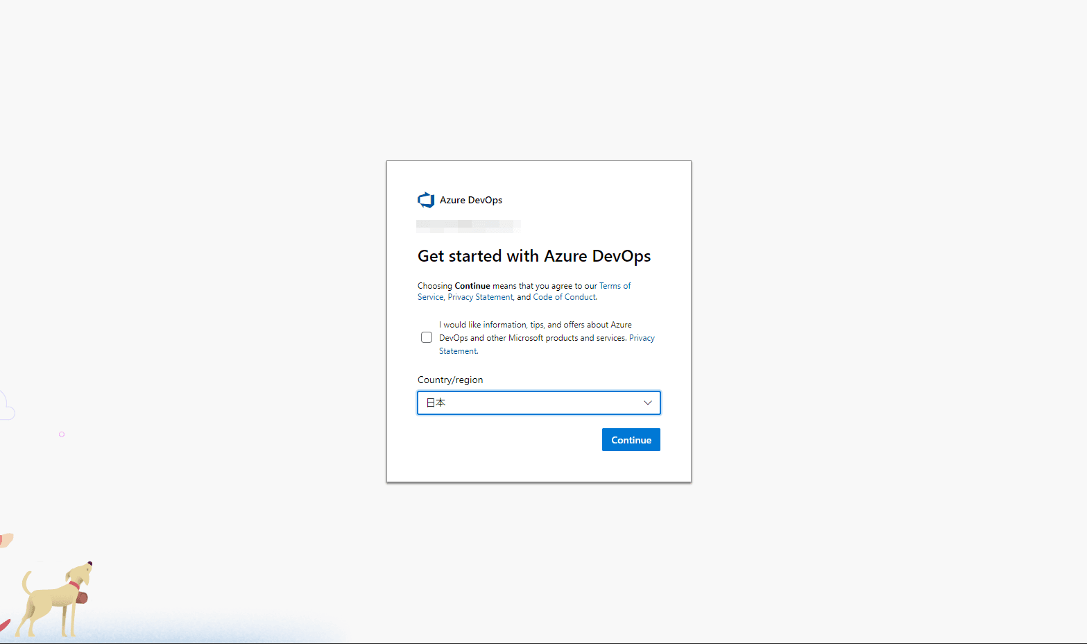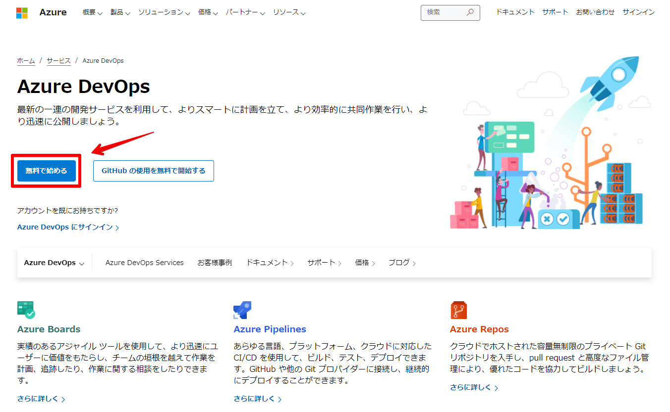 まずは、Azure DevOpsのサイトに行き、アカウントを作成します。
