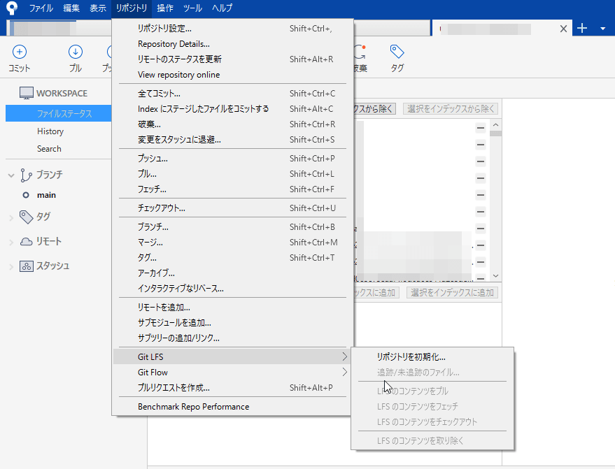 Sourcetreeでは、「リポジトリ」→「Git LFS」→「リポジトリを初期化」とするとGitLFSが利用出来るようになります。