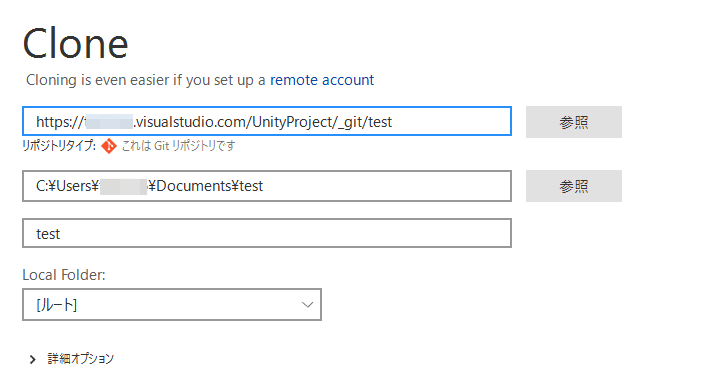 この書き換えて出来たvistualstudio.comで終わるURLをホストURLに入力します。