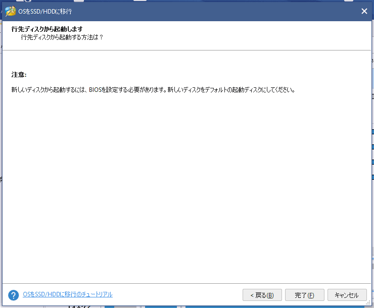 全ての処理が終わり、一旦元のストレージでOSが起動できることを確認したら、BIOSで起動順序を変えるか、元のストレージの接続を外すことで換装が完了します。