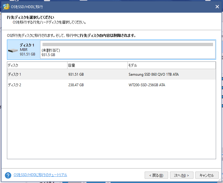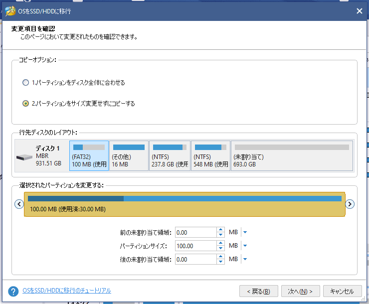 ※セクターコピーではないので、空き容量によっては、移行元より大きなサイズのストレージでなくてもOK