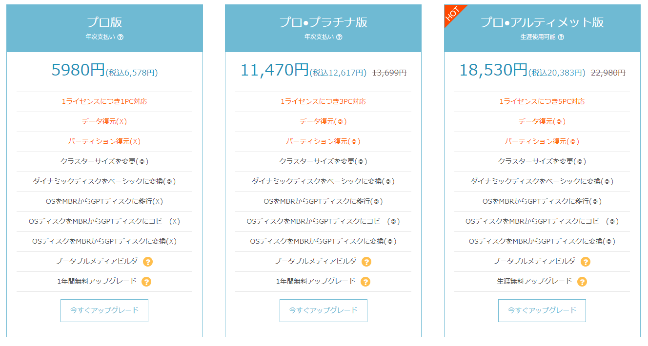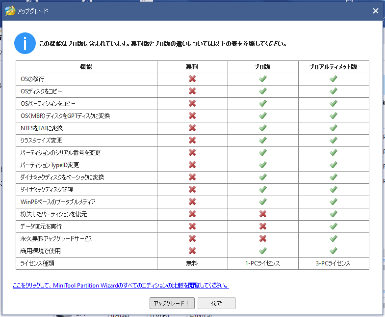 Windows系OSでパーティションを操作したり、ストレージクローンを行うときに便利で強力なソフトです。無料版でOS移行が出来ないのが残念ですが、その他の機能は無料版でも十分有用です。