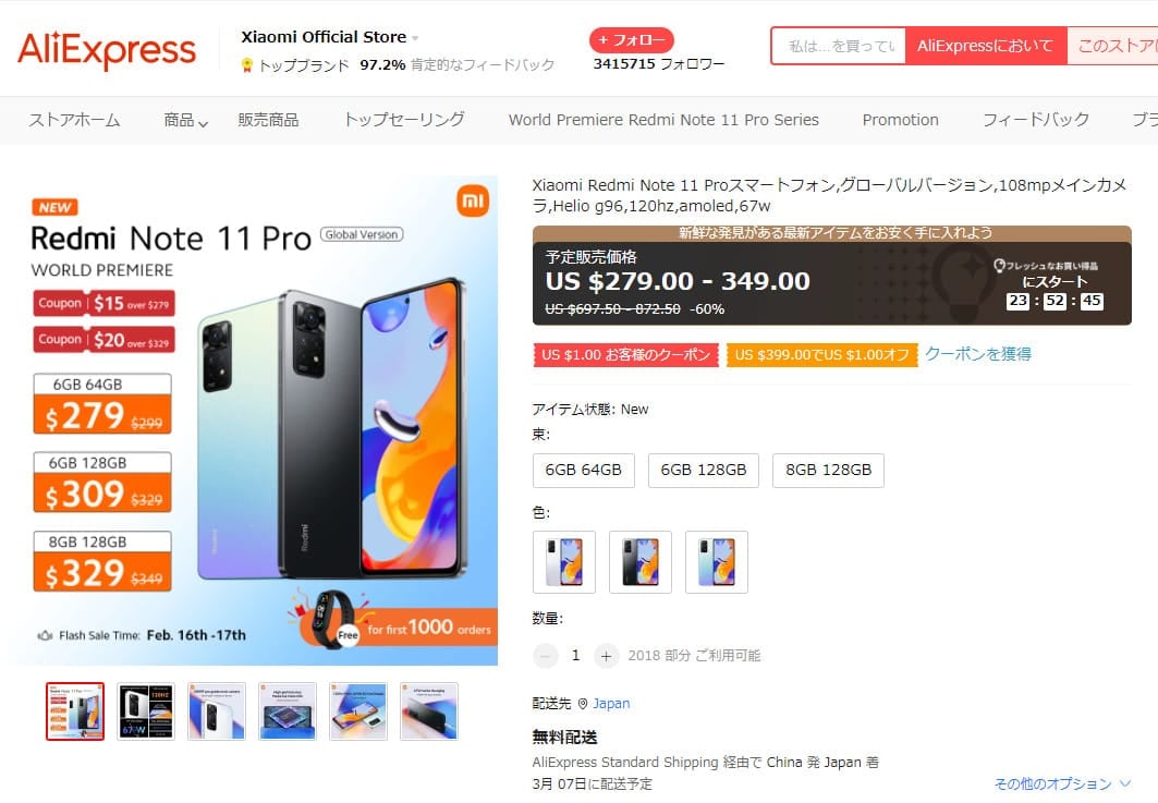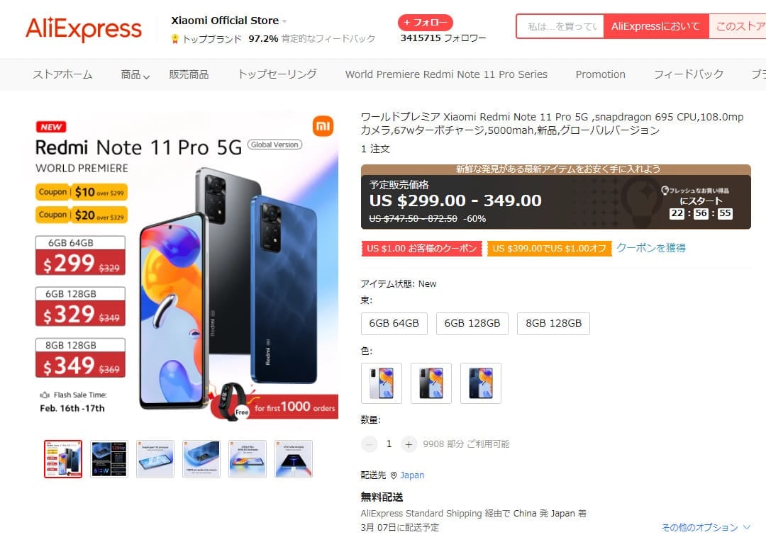 販売開始時に発行されるクーポンを適用することで、Snapdragon 695 5G搭載のRedmi Note 11Pro 5Gが最安モデルが約3.2万円から、MediaTek Helio G96搭載のRedmi Note 11Proが約3万円から購入できます。