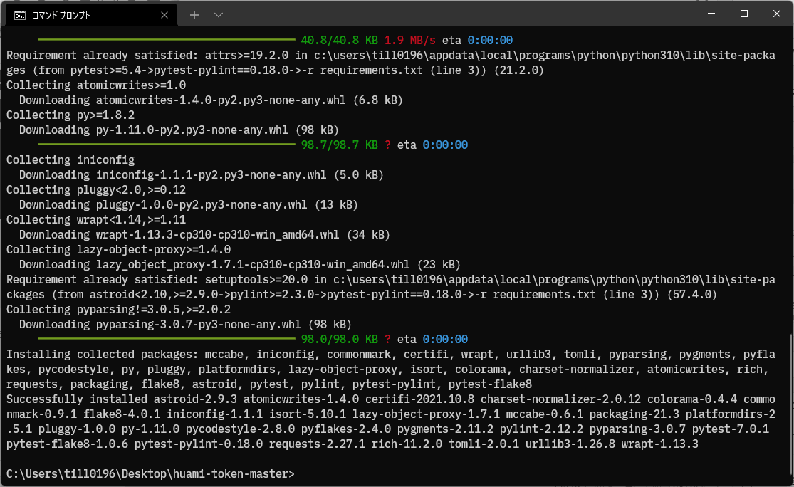 pip3 install -r requirements.txt続いて上の文字列をコピペし、エンターを押します。