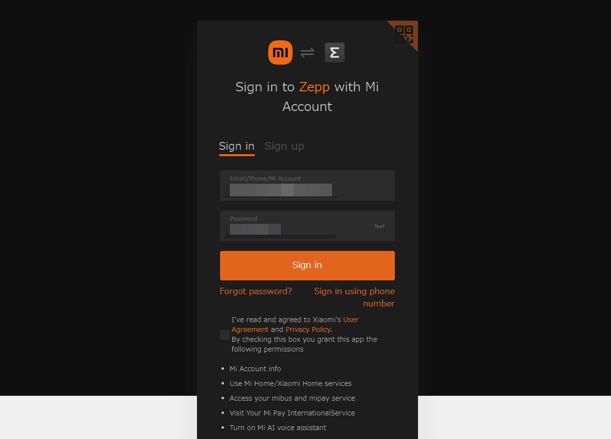 SNSログインを使っている場合は、予めMi FitアプリからMi アカウントの紐付けを行ってください。