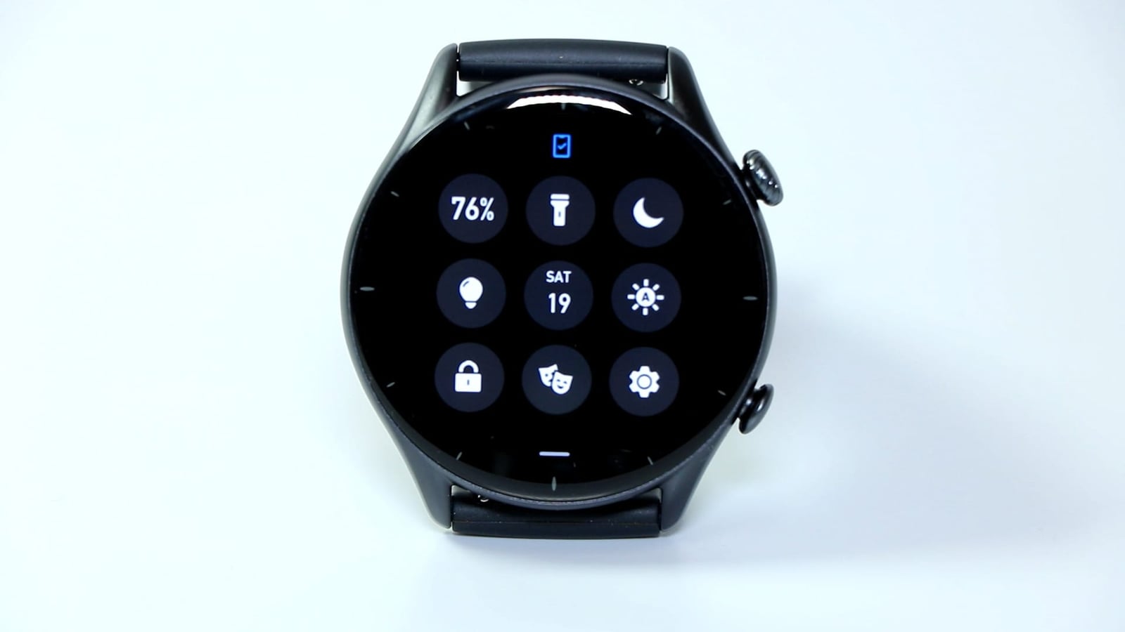 時計盤の状態から上から下にスワイプすると、スマホのクイック設定のようなパネルが出現。この項目はアプリで並び替えたり、項目を消したりすることが出来ます。