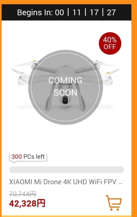 最近出たばかりのXiaomiのドローンですが、今回のセールではフラッシュセール時の1万円以下の値段で手に入ります。